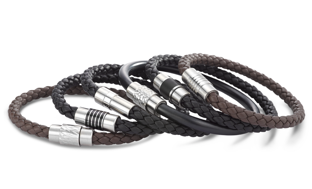 Geflochtenes Leder oder nachtschwarzer Kautschuk verbindet sich mit kühlem Edelstahl. Das TeNo Safe Lock System verspricht äußerste Stabilität und hohe Flexibilität.