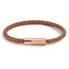 Lederarmband Heritage Roségold aus Edelstahl, Flechtleder HAVANA BROWN, 19cm