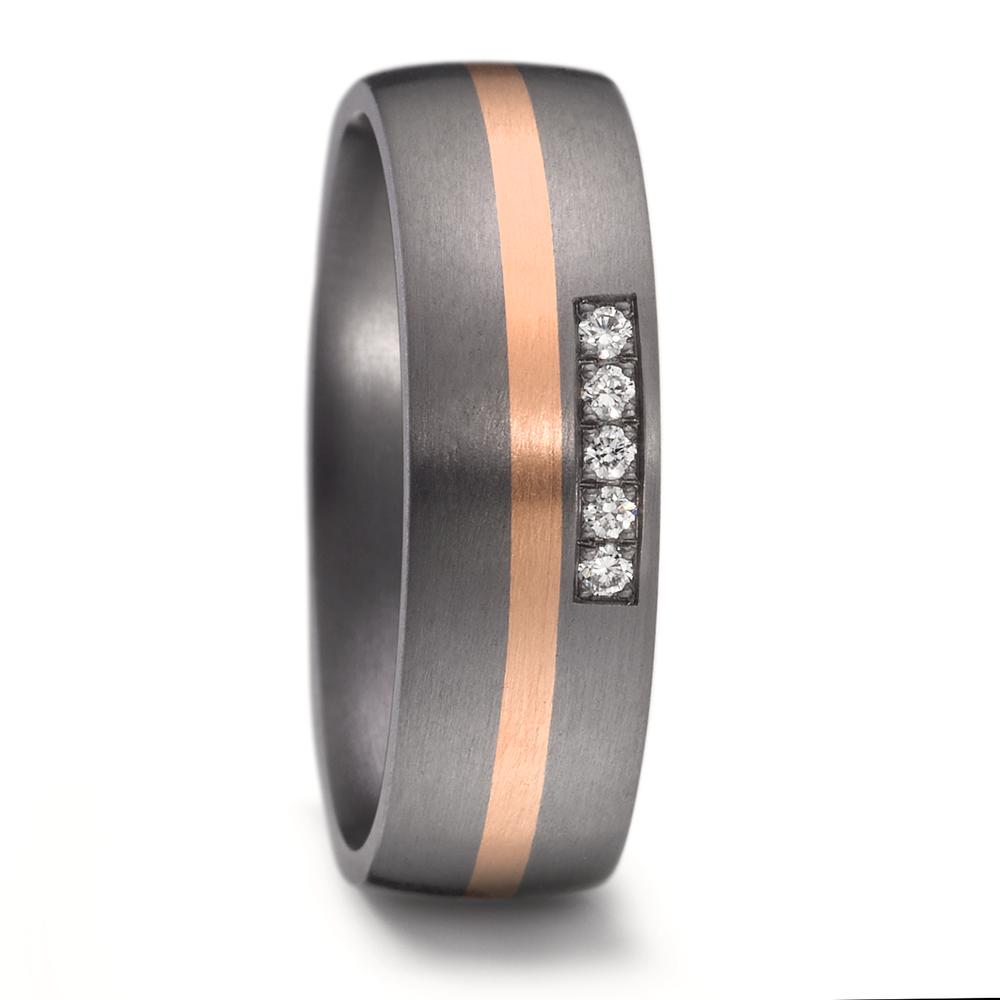 Partnerring 999 Tantal, 585/14 K Rosegold Diamant 0.05 ct, 5 Steine, w-si