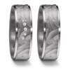 Eleganter Damen-Partnerring aus 999er Tantal mit einzigartiger, strukturierter Oberfläche. Veredelt mit fünf funkelnden Diamanten, symbolisiert er Verbundenheit und Stil. Perfekt für besondere Anlässe oder als Zeichen der Liebe – robust, zeitlos und edel zugleich.