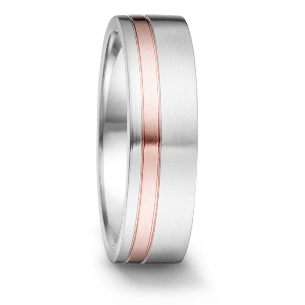 Partnerring Edelstahl mit 750/18 K Roségold, 6 x 2 mm