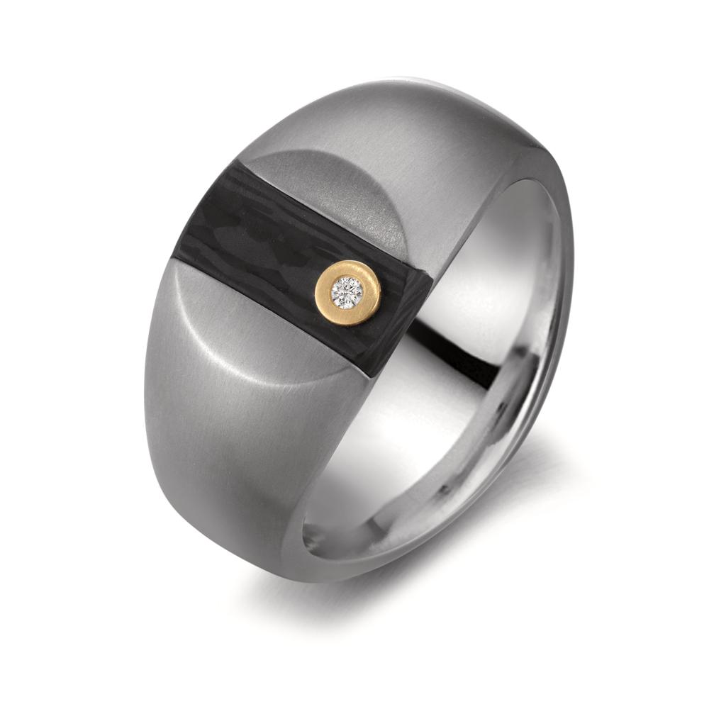 Fingerring Carbon, Titan, 750/18 K Gelbgold Diamant 0.02 ct, w-si