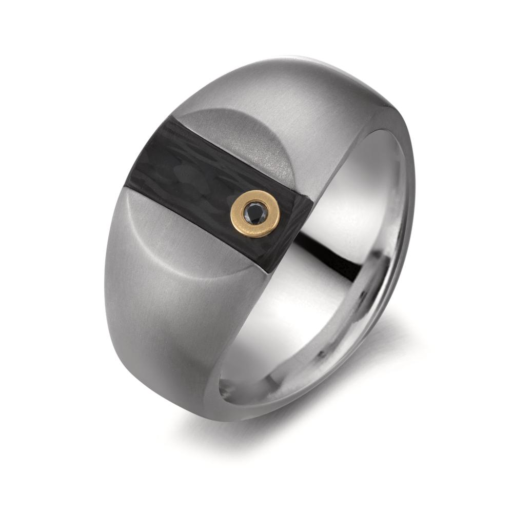 Fingerring Carbon, Titan, 750/18 K Gelbgold Diamant schwarz, 0.02 ct